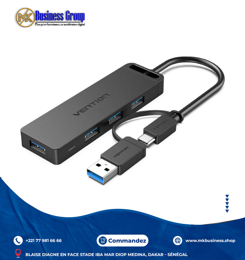 Fiche Technique – Hub USB 4 en 1 (Type-C / USB-A) Caractéristiques principales Double connecteur : USB-A & Type-C, compatible avec un large éventail d’appareils Transfert de données : Standard 5 Gbit/s (USB 3.0) Capacité...