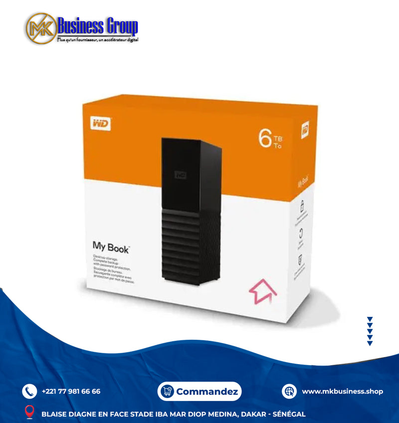 WD My Book 6TB – Disque dur externe 3,5" USB 3.0 Description Le WD My Book 6 To est un disque dur externe haute capacité conçu pour stocker, sauvegarder et protéger vos données importantes. Idéal...